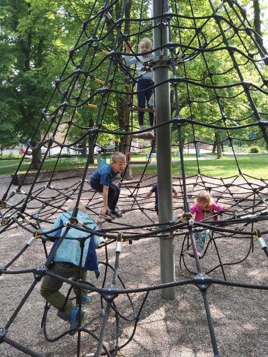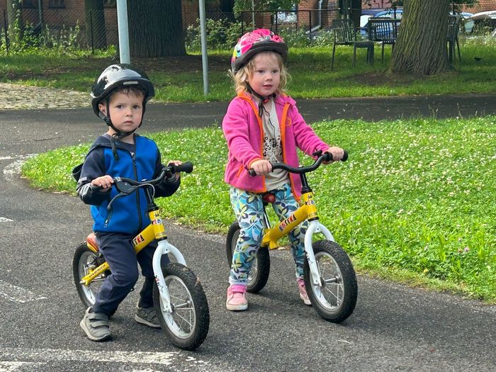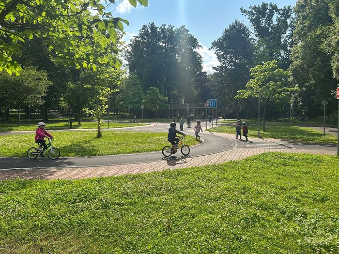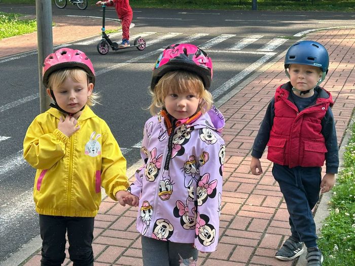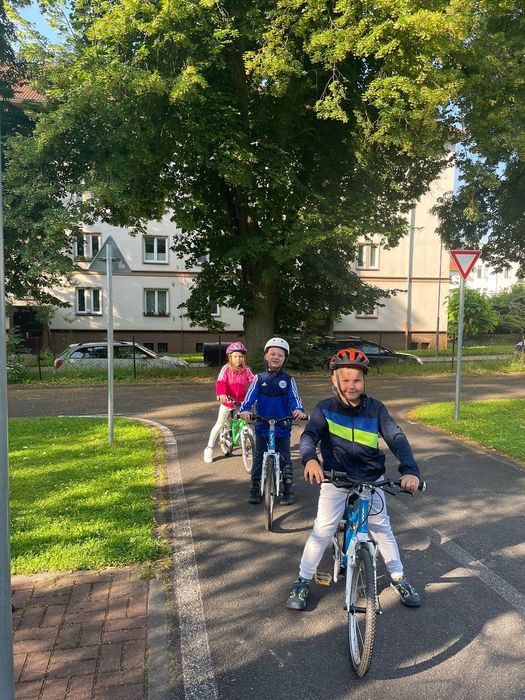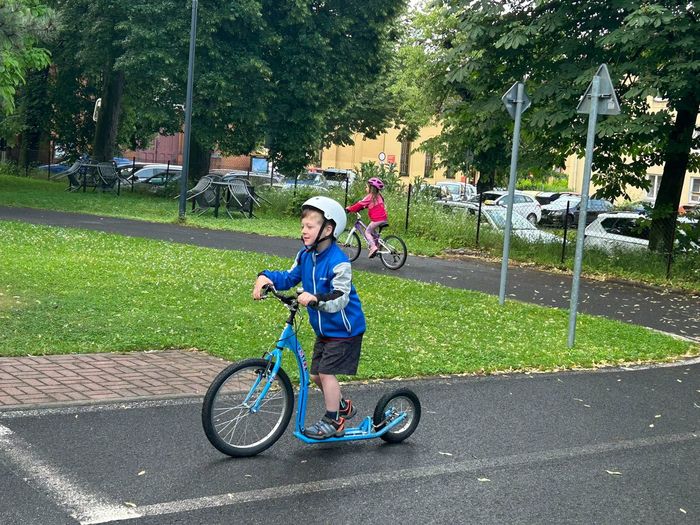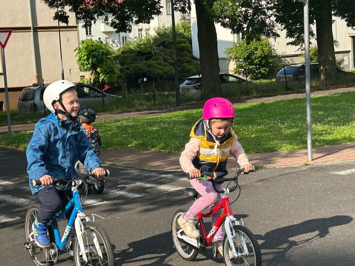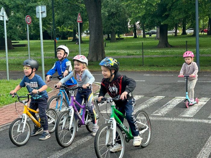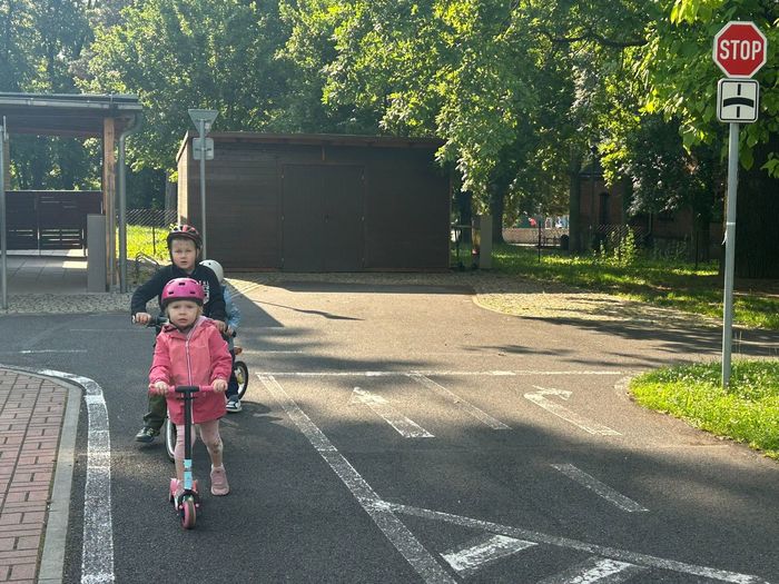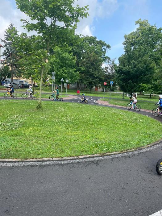 V červnu děti absolvovaly několik návštěv DH v Litoměřicích, kde se seznamovaly s pravidly silničního provozu v praxi. Vyzkoušely si jezdit podle dopravních značek, podle semaforu, dodržovaly pravidla jízdy, ale i pravidla pro chodce. Největší problém byl, po jaké straně se jezdí, správné brždění, skloubení informací při používání. Děti se s tím však statečně popraly a na konci už to skoro zvládaly jízdu bez problémů. Na závěr jsme si pohráli na hřišti.