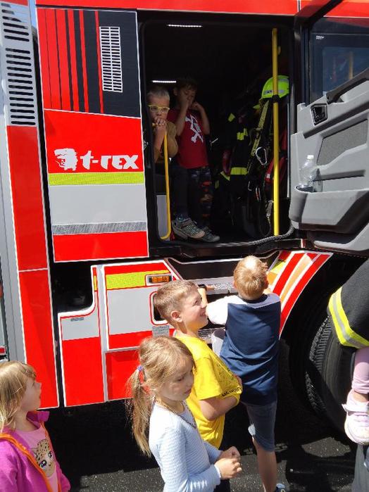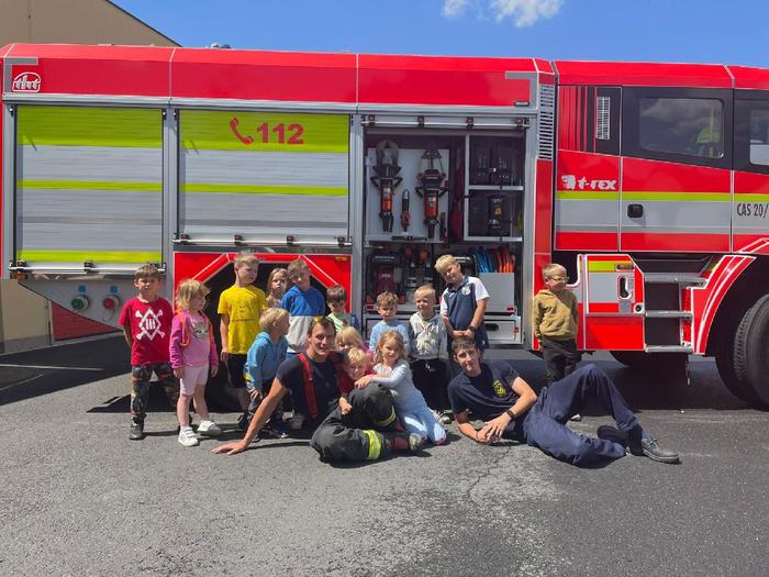 V úterý jsme ráno navštívili Dopravní hřiště v Litoměřicích, poté jsme si dali zmrzlinu v Terezíně a následovala cesta do Roudnice, kde na nás čekali Hasiči. Děti si prohlédly zázemí Hasičského sboru profesionálních hasičů, prozkoumaly auta a nakonec si mohly stříkat hadicí, což byl ten správný zážitek. Po uhašení "požárů" jsme se vydaly uhasit hlad do naší školky. Celé dopoledne nám svítilo sluníčko a děti měly úsměvy na tváři.