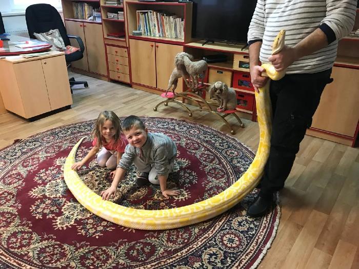 Dne 23.11. jsme se všichni sešli ráno v MŠ Čtyřlístek Terezín, kde jsme strávili příjemné dopoledne. Shlédli jsme představení cvičených francouzských pudlíků, pohladili jsme si hady. Ve třídě jsme pracovali na interaktivní tabuli a po obědě jsme vyrazili místním autobusem k nám do školky. Toto dopoledne velice rychle uteklo. Těšíme se na další.