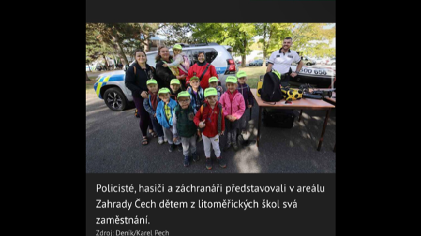 Dne 3.10. 2023 děti objevovaly na výstavišti Zahrady Čech IZS. Vše si prozkoumaly, vyzkoušely, zhlédly ukázku zachycení a eskorta pachatele. Pro děti to bylo velice příjemně ztrávené dopoledne plné emocí, poznatků a hlavně prožitků.