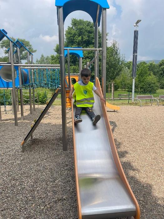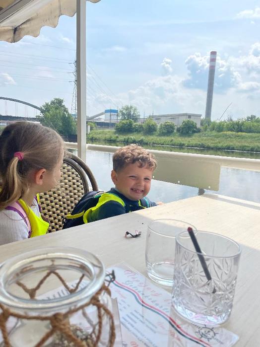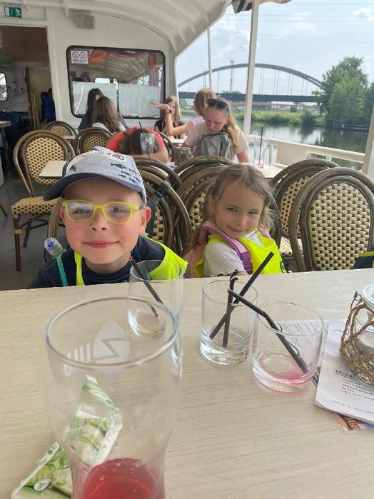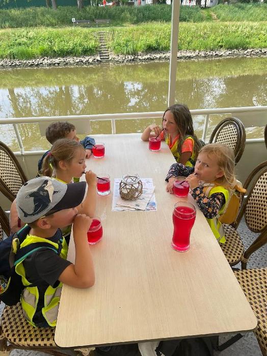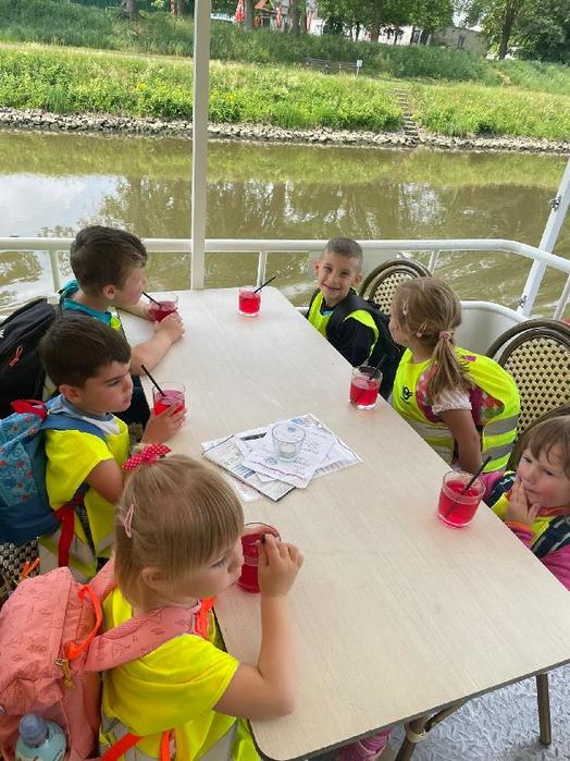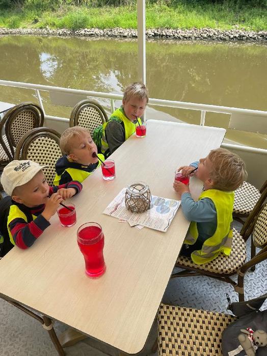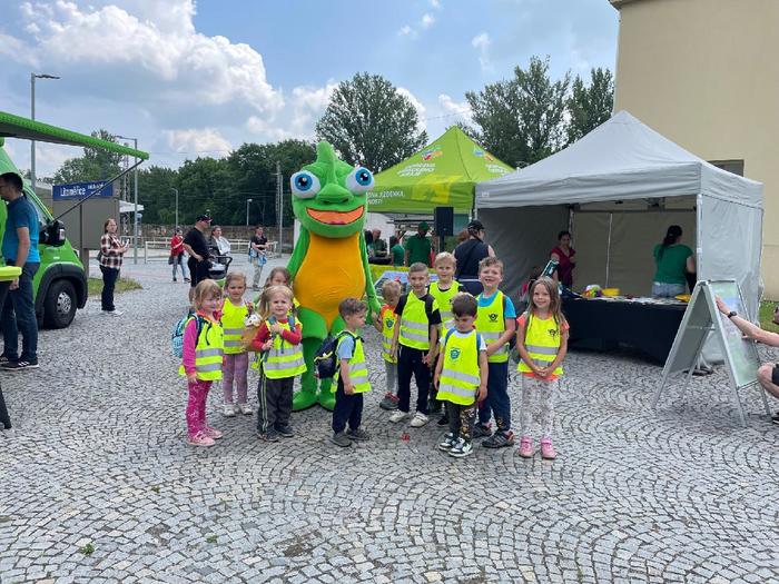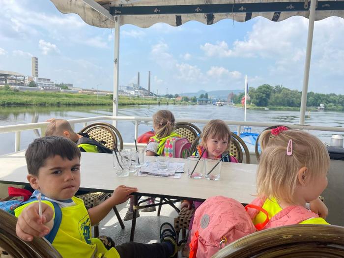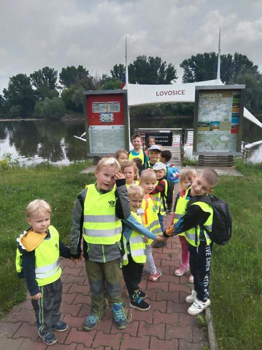 V úterý jsme se vydali na dobrodružnou cestu po okolí. Místo vlaku jsme použili autobus a dojeli do Lovosic, kde jsme si ukázali autobusové, vlakové nádraží, zastávky autobusu. Zastavili jsme se u policejní stanice, kde jsme si prohlíželi policejní automobil. Následovala cesta kolem bazénu, koupaliště, zimního stadionu k vyhlídce, kde jsme se občerstvili dobrotami z domova. Společně s námi se chtěly občerstvit i kachny, ale na ty nezbylo. Následovala cesta na Osmičku - hřiště, kde se děti vydováděly. Při příjezdu lodě děti vzorně vyčkaly než vystoupí lidi a pak jsme se nalodili. Na palubě se osvěžili limonádou, lízátkem a dalšími dobrotami, které jim zbyly z domova. Cesta se protáhla, jelikož s námi v komoře jel i další parník a museli jsme na něj čekat než dorazí. Náš příjezd se tedy opozdil a tudíž jsme nestihli autobus, ale my jsme aspoň čas využili k tomu, že jsme poznávali možnosti cestování s DÚKáčkem - maskotem DÚK. Děti si zasoutěžily, zatancovaly, vyfotily a domů, tedy do školky, jsme si odnesli bločky na malování, křídy, nafuk. míčky, ale hlavně nového maskota na cesty DÚKáčka. Následovala cesta autobusem do školky, kde na děti čekal oběd a nanuk. Celý výlet byl plný zážitků, poznávání, legrace, ale také i únavy, jelikož cestu absolvovali i ti nejmenší. Všichni byli moc šikovní a těší se na další společné objevování.